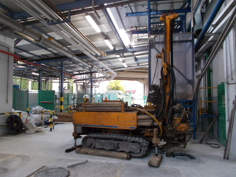Remediació del subsòl afectat per dissolvents clorats en una indústria farmacèutica – Fase I (retirada de focus primari) + Fase II (Remediació subsòl).